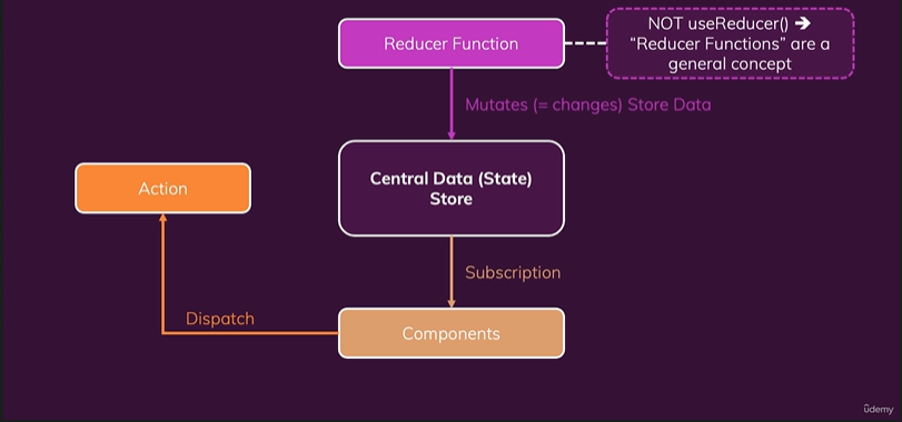 여기서 알아야 할 점은 리듀서 함수는 우리가 알고 있는 useReducer 훅과 다르다는 점이다.