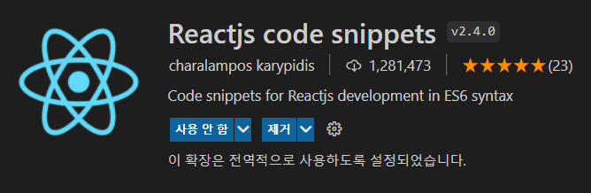 vscode Extension 에서 Reactjs code snippets를 설치한다.