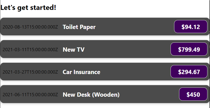 App.js 에서 expenses 객체를 생성해주고 데이터를 전달해주고 싶은 컴포넌트에 속성을 추가하여 데이터를 전달한다. <ExpenseItem title={...},amount={...},...> ExpenseItem 컴포넌트의 title, amount, ...을 Props의 속성으로주고 중괄호 {} 안에 전달하고 싶은 값을 넣어주어 속성과 함께 전달 할 수 있다.